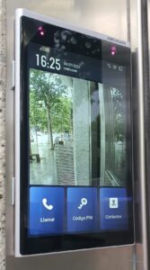 También se ha instalado una central de conserjería con pantalla táctil, para gestionar las llamadas de acceso al edificio. Además de visualizar la cámara de la pantalla de calle, puede llamar y recibir llamadas de las pantallas de las viviendas. Esto facilita la comunicación y gestión de accesos entre viviendas y conserjería.