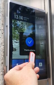 - Acceso de usuarios de apartamentos, que pueden acceder mediante tarjeta, código pin o reconocimiento facial, y a su vez pueden compartir un código QR de acceso para invitados, que presentándolo en la pantalla de calle autoriza el acceso durante un tiempo limitado.